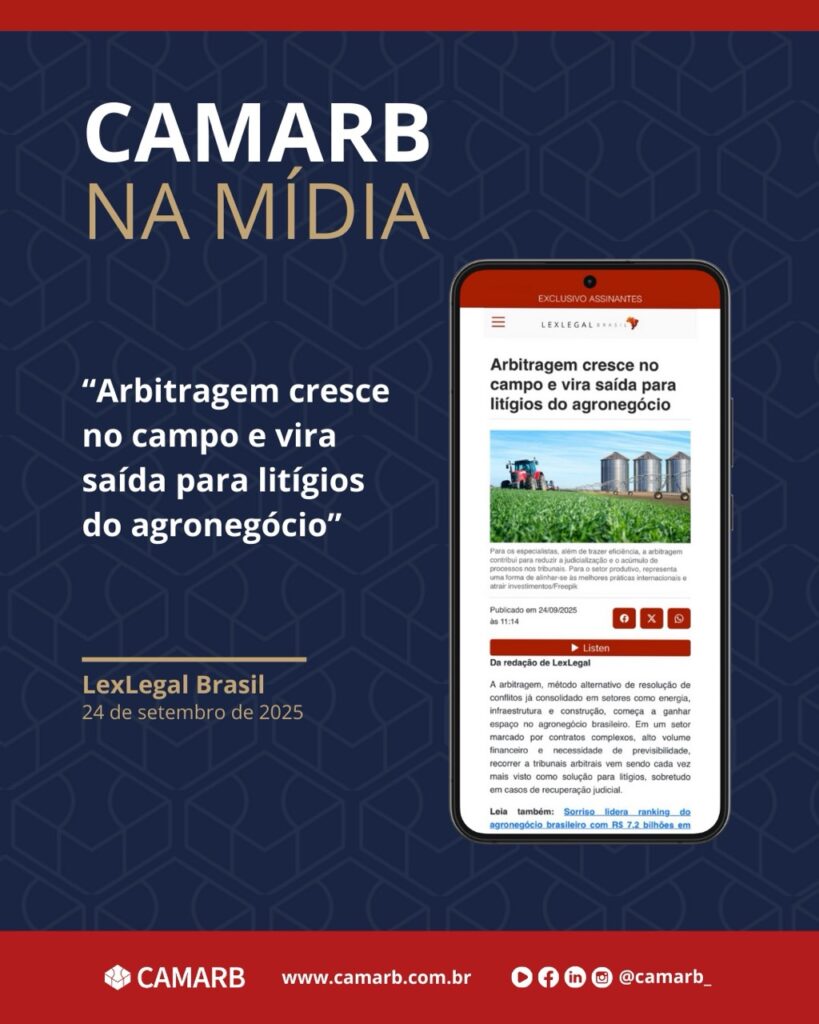 A matéria destaca que a agilidade, a eficiência e o fato de contar com árbitros especializados possibilitou o avanço desse método de resolução de controvérsias em vários setores estratégicos e se coaduna com as necessidades do agronegócio, segundo Camila Biral, Vice-Presidente de Agronegócio e Coordenadora do Comitê da Agronegócio da CAMARB.