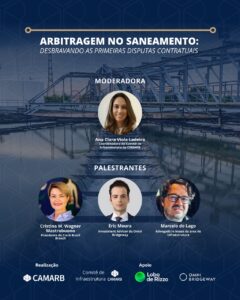 No dia 5 de março, a partir das 9h, a CAMARB realizará o evento sobre “Arbitragem no saneamento: desbravando as primeiras disputas contratuais”, na sede do escritório Lobo de Rizzo, em São Paulo, Av. Brig. Faria Lima, 3900 – Itaim Bibi.