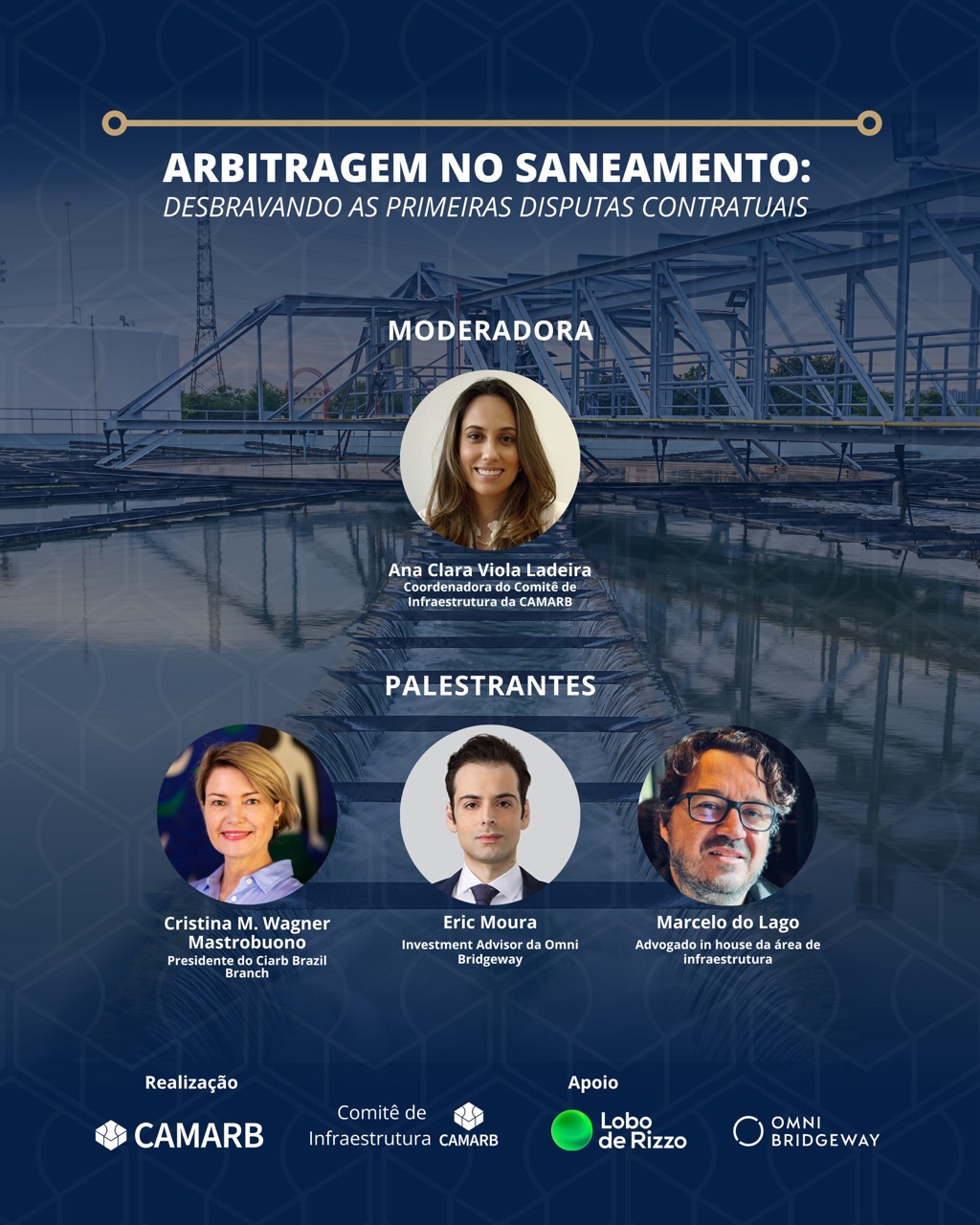 O evento tem o apoio do Comitê de Infraestrutura da CAMARB e do escritório Lobo de Rizzo, e patrocínio da Omni Bridgeway.