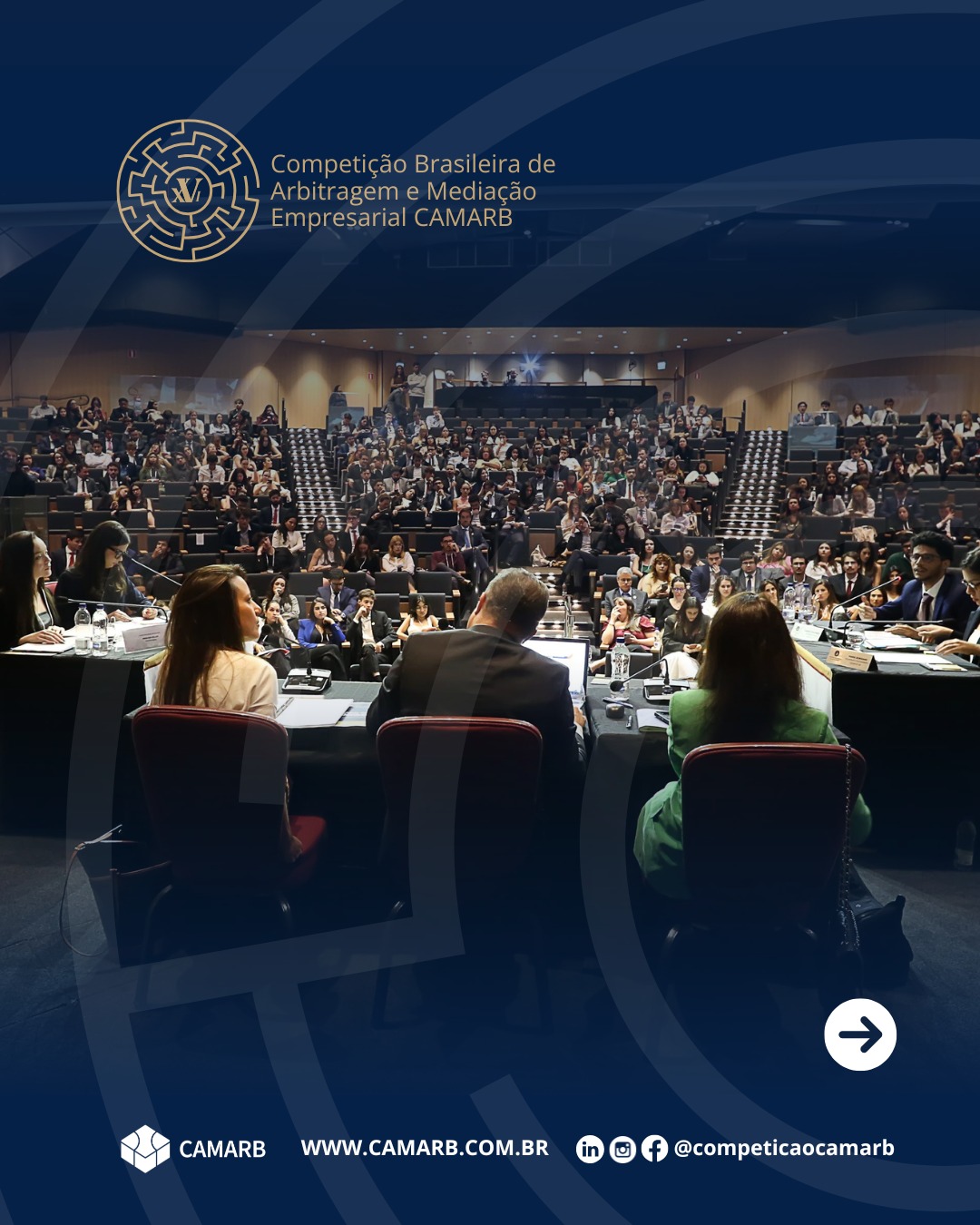 No dia 25 de outubro de 2025, aconteceram as finais de Mediação e Arbitragem da XVI edição da Competição Brasileira de Arbitragem e Mediação Empresarial da CAMARB. Foi um dia de intensas emoções e muita alegria para todos os competidores e avaliadores que participaram da edição.