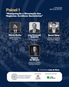 O primeiro Painel abordará o tema “Manipulação e Simulação dos Negócios Jurídicos Societários”, com a participação de Glauco Rocha, Luis Fernando Guerrero, Bruno Viana e Victória da Silveira.