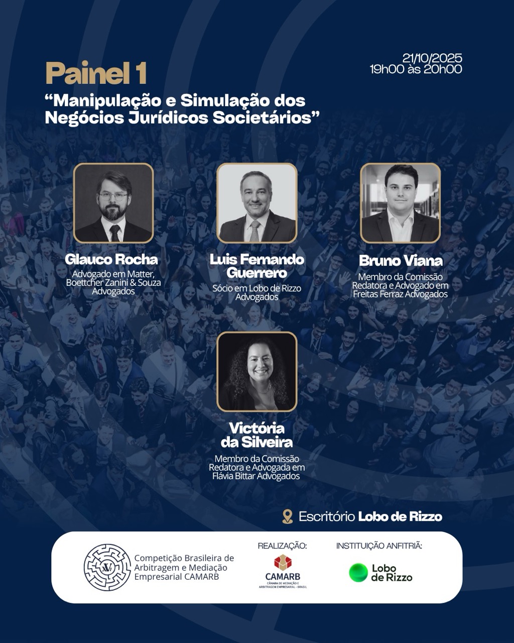 O evento será realizado presencialmente, com transmissão ao vivo, no escritório Lobo de Rizzo, em São Paulo, na Av. Brig. Faria Lima, 3900, 12º andar – Itaim Bibi, São Paulo – SP.